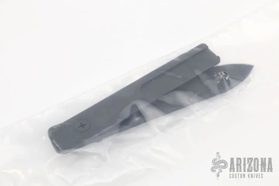 This handmade Bayonet by A. Daniel Valois features a black coated, partially serrated blade 5/32″ blade stock, 5/8″ blade depth. Mounts to any rifle barrel with a hose/tube clamp. Wing nut closure. New from the makers estate.