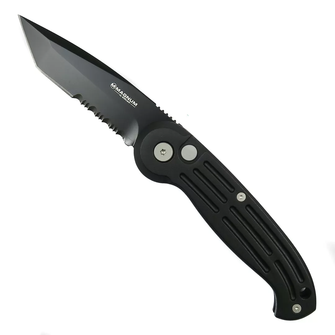 Boker Magnum Black SpeedMaster Auto Knife, Black Tanto Combo Blade