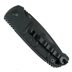 The Boker Plus Black Intention was designed as a tactical automatic knife and can easily handle all tactical and everyday cutting tasks. The stonewash D2 blade is opened with a push button and swings open by means of the tensioned spring behind it. The knife is secured with a well-fitting sliding lock protecting the user from opening the knife by accident. The black, ergonomically shaped handle is made from textured G10 with a fluted thumb rest and deep finger choil for a secure hand position. The pocket knife features a lanyard hole and a tip-down pocket clip.