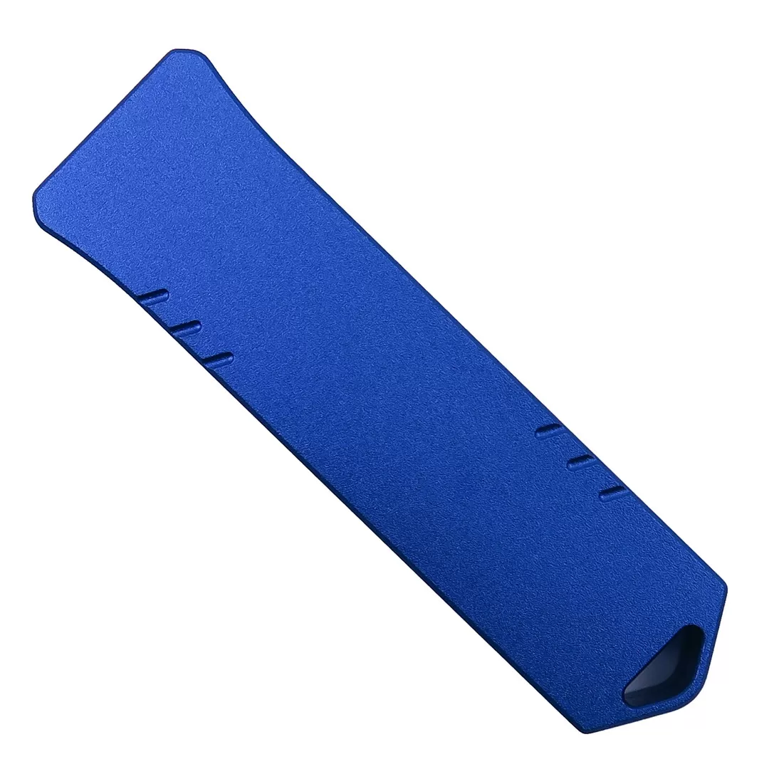 Perfect for everyday carry, this easy one-hand use knife is sure to become your new favorite carry. The CNC milled 6061-T6 aluminum handle makes it durable and tough even under heavy use. The handle is anodized blue.