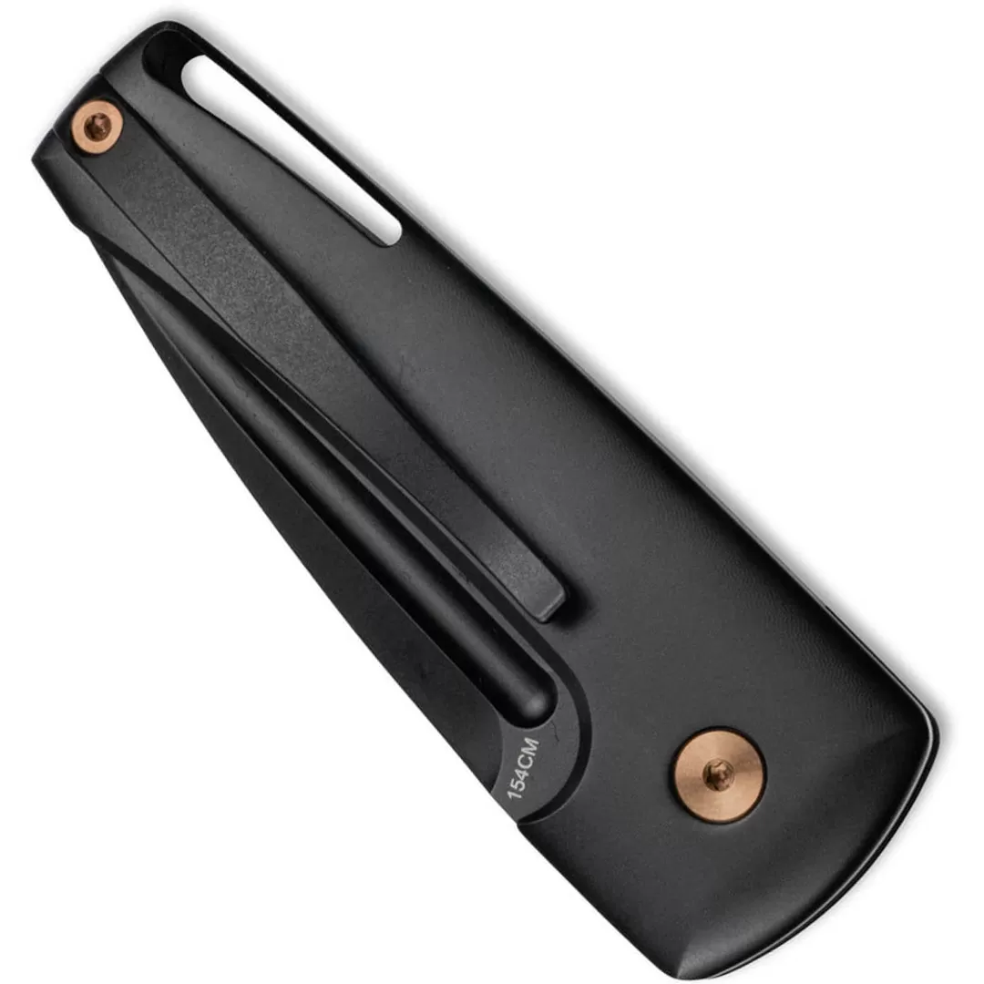 The Boker Plus Harlock Mini, designed by Darriel Caston, is a surprisingly powerful gentleman’s knife. This compact, minimalistic knife boasts an unusually shaped handle made of black-coated stainless steel. This handle is paired with a blade, also coated black, which opens like a dream at the touch of a button. This blade can be locked with the help of a slide lock, preventing accidental release. With a decorative ricasso, a distinctive groove, and the brass-colored hardware, this classy knife is sure to get the job done and look good doing it.Â