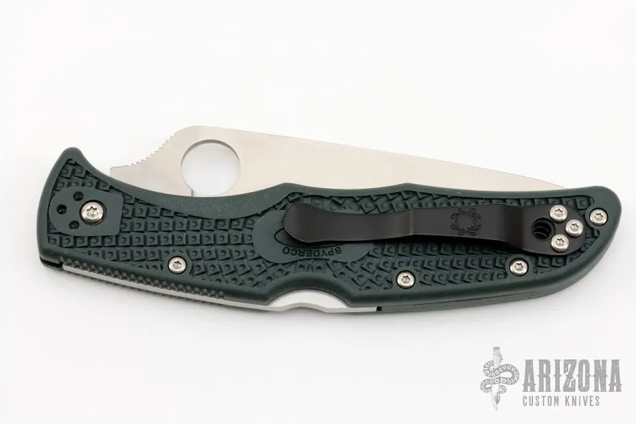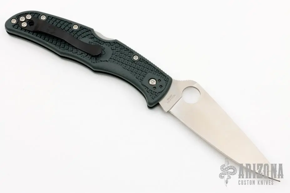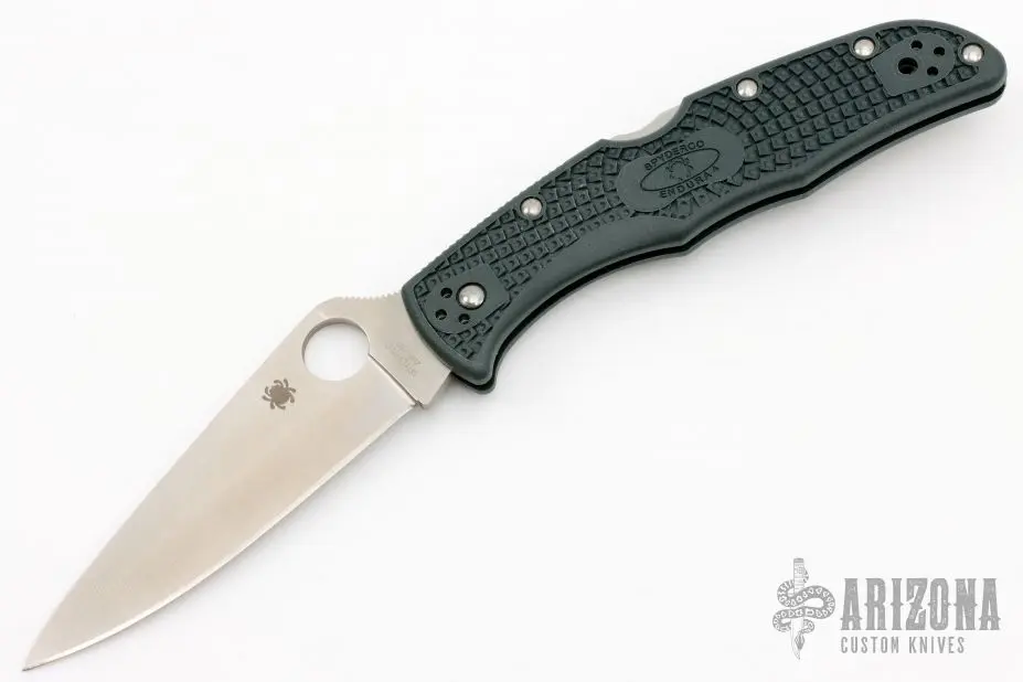 This Endura lock back folding knife by Spyderco features a ZDP-189 satin finish blade with a green FRN handle with a black stainless steel clip. Has a few light scratches, otherwise great condition.