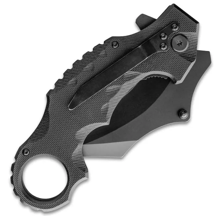 Delta Defender Assisted Opening Black Karambit Knife – Stainless Steel Blade, Non-Reflective Coating, G10 Handle Scales, Pocket Clip