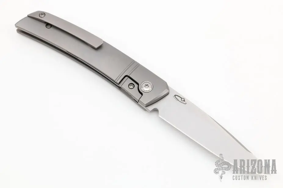 This F22 was designed by Jared Oeser, manufactured by Reate Knives and features Lee Williams Kickstop. Â This knife features a satin finished blade with a notched flipper tab. Â The handle has titanium scales with a titanium backspacer, tip up pocket clip and escutcheon. The knife opens with the use of Lee Williams’ Kick Stop flipper. Â Includes the original box. Â New from Maker!Â