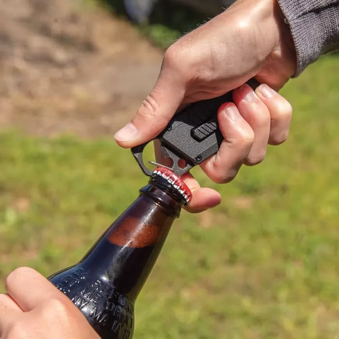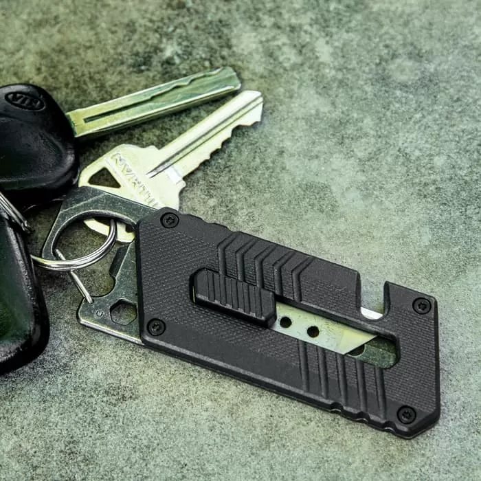 The Havoc Utility Knife is a must-have for your kitchen drawer, your tool box, your camping gear and tackle box. The knife has a ridged nylon fiber and stonewashed stainless steel handle case with an integrated carabiner clip. The utility blade can be deployed with a slide trigger, locking securely into place and two extra blades are included.
