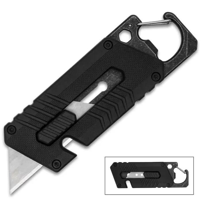 Havoc Utility Knife – Stainless Steel Blade, Nylon Fiber And Steel Handle, Integrated Carabiner, Slide Trigger – Closed Length 4”