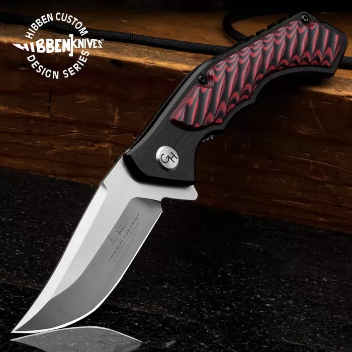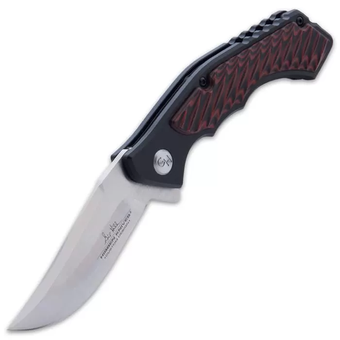 Hibben Red Whirlwind Pocket Knife – 7Cr17 Stainless Steel Blade, G10 And 6061 Aluminum Handle, Pocket Clip