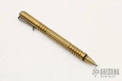 When we started thinking about a small tactical pen we wanted to have a pen that is as small as the refill would allow but still have something that you could use to get out of a bad situation if you had too. So as you all can see we kept to the basic idea of all of our pens and kubatons with the deep grooves at each end of the body. This pen also has the same longitudinal grooves in the middle portion of the body as the Extreme Duty pen. So even though this pen is shorter and smaller in diameter you can still get a very good grip on it when striking! This model like all our others is also a MODULAR pen. The small bullet on the back of the pen is a separate threaded piece, meaning that we will be adding all of the other attachments such as the warhead, strike bezel, etc. Features: Designed and manufactured using state of the art CNC and CAD_CAM technology. Properly placed traction grooves give a good firm grip when using pen in a CQB mode. “Overbuilt” toughness designed to take any level of punishment Course threads used throughout for extra thread height which translates into a very strong tough thread able to take the punishment of hard strikes. Modular design so the user may add a multitude of end attachments to configure the pen however the person or mission dictates. Made from Brass Uses Fisher Space Pen full size refills (pn# SPR4B) Specs: 3/8” Diameter – Overall Length 4 1/4 Comes with original packaging, excellent condition.