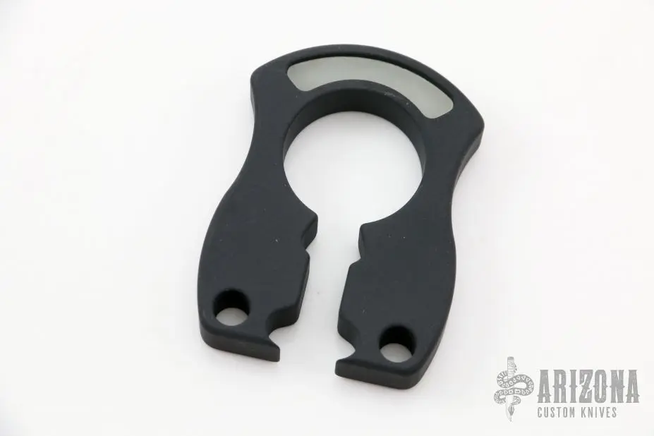 This keeper by John Gray is made from aluminum and has been cerakoted black and has glow in the dark inlays. Has a bottle opener and holes for a key ring. Can be hung from a belt loop. Can also be used as a knuckle. New from maker at the 2022 USN Gathering. This one’s pronouns are “He/Him”.
