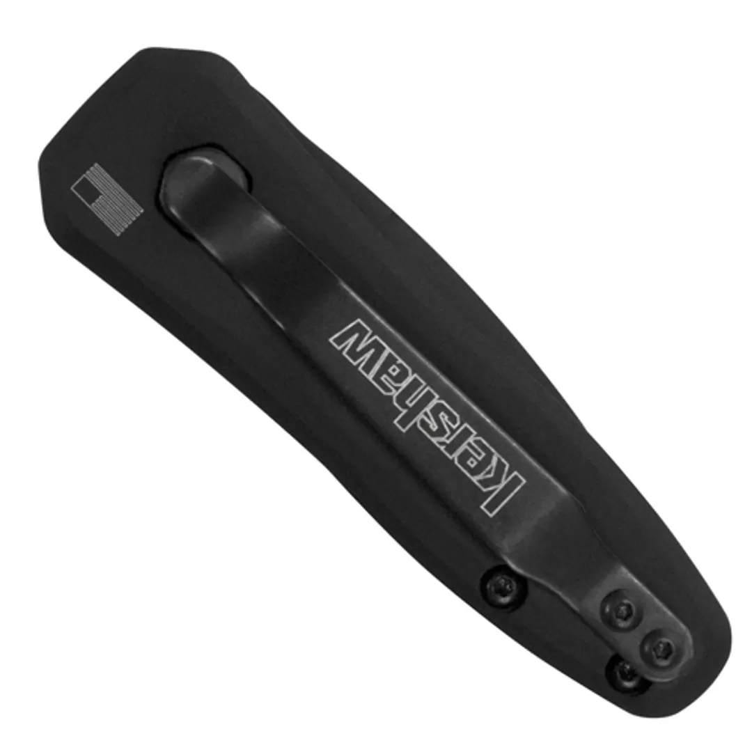 The handle on the Launch 4 is made of an anodized aluminum. Aluminum is just like titanium, in that it is a nonferrous (non-iron or non-steel) metal. The aluminum gives the knife a solid feel, without adding the extra weight. It is strong, durable, and has a great resistance to corrosion. When first holding the knife, it is cold to the touch. However, it quickly warms up and feels great to hold. It is also cost effective which helps to reduce the overall cost of the knife. The aluminum handle on the Launch 4 is smooth to the touch and has rounded edges for a more comfortable hold. To sum up, how it looks in one word, I would have to say it is slick. The handle also features the iconic red bullseye button. This helps add some excitement to the overall design of the knife. Along with the bullseye button, there is the Kershaw rendition of the American flag on the backside of the handle, signifying that this knife is indeed made in the United States. Lastly on the handle is the single position pocket clip. With the Kershaw name marked boldly on the clips surface, this pocket clip almost extends the full length of the handle. It measures in just over 2.50 to make for a secure pocket carry. The handle is definitely one of the unique characteristics to the Launch 4 and the Launch Auto Series.