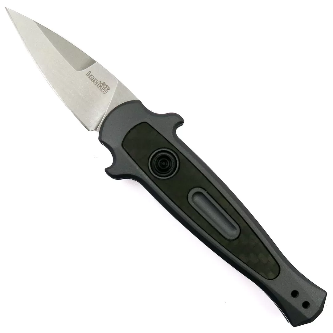 This Kershaw Launch 12CA automatic knife features a grey anodized aluminum handle with carbon fiber inlay, a spear point stonewash finished blade. It also boasts a L/R reversible tip-up pocket clip. The 1.93″ blade allows greater carry flexibility in less auto friendly states.