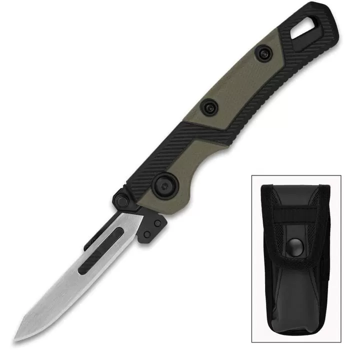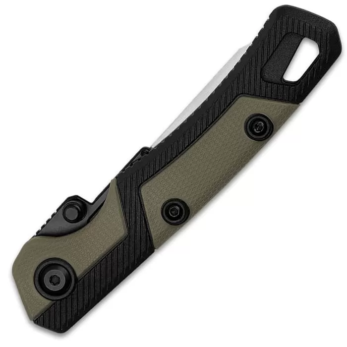 The manual opening LoneRock RBK 2 Pocket Knife is an upgraded version of a skinning and caping knife. Like the original, it includes replaceable surgical-precision blades. Instead of having to stop and sharpen when a knife gets dull in the middle of skinning, just snap-in a new blade and keep working. A liftable liner allows users to remove and replace blades safely and easily with a non-slip grip. The 7 1/5” overall, RBK 2 also features a revamped handle for greater ergonomics and longer work sessions. It comes with 15 blades and a “buddy” handle. This slim, extra handle holds an RBK 2 blade so that both you and your buddy can take on the skinning task—to get the job done quicker.