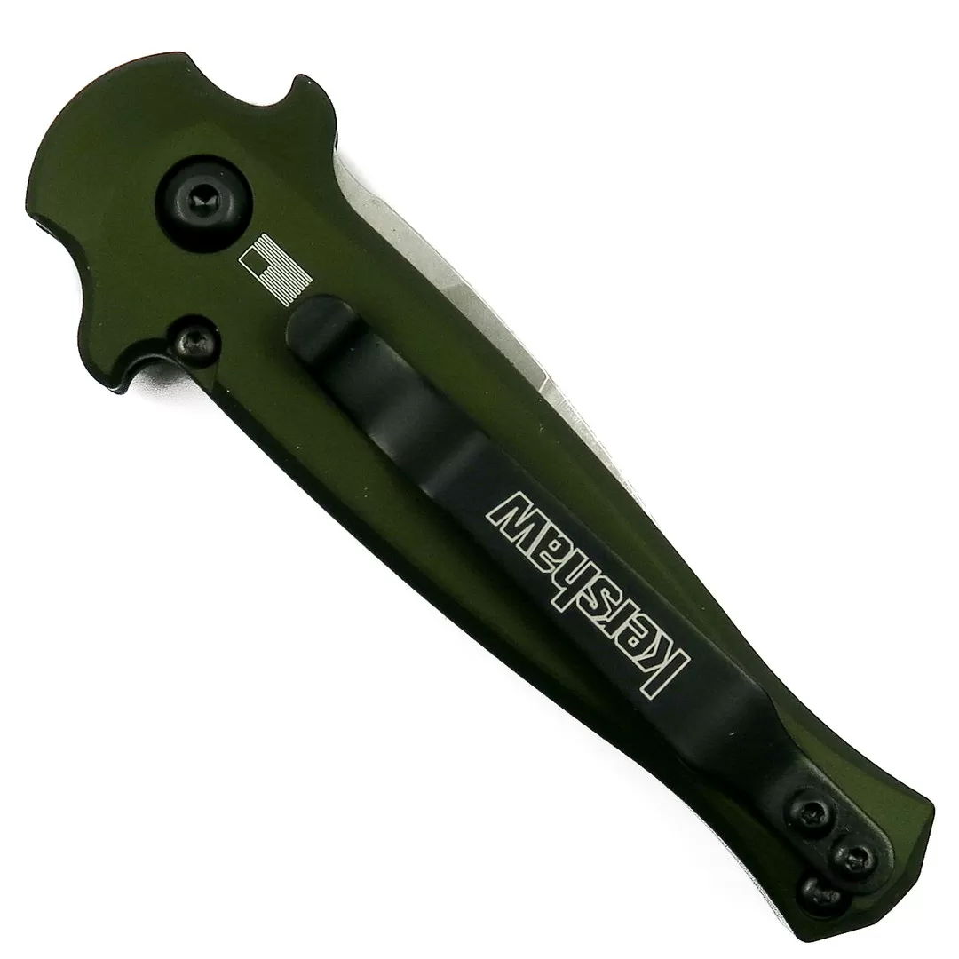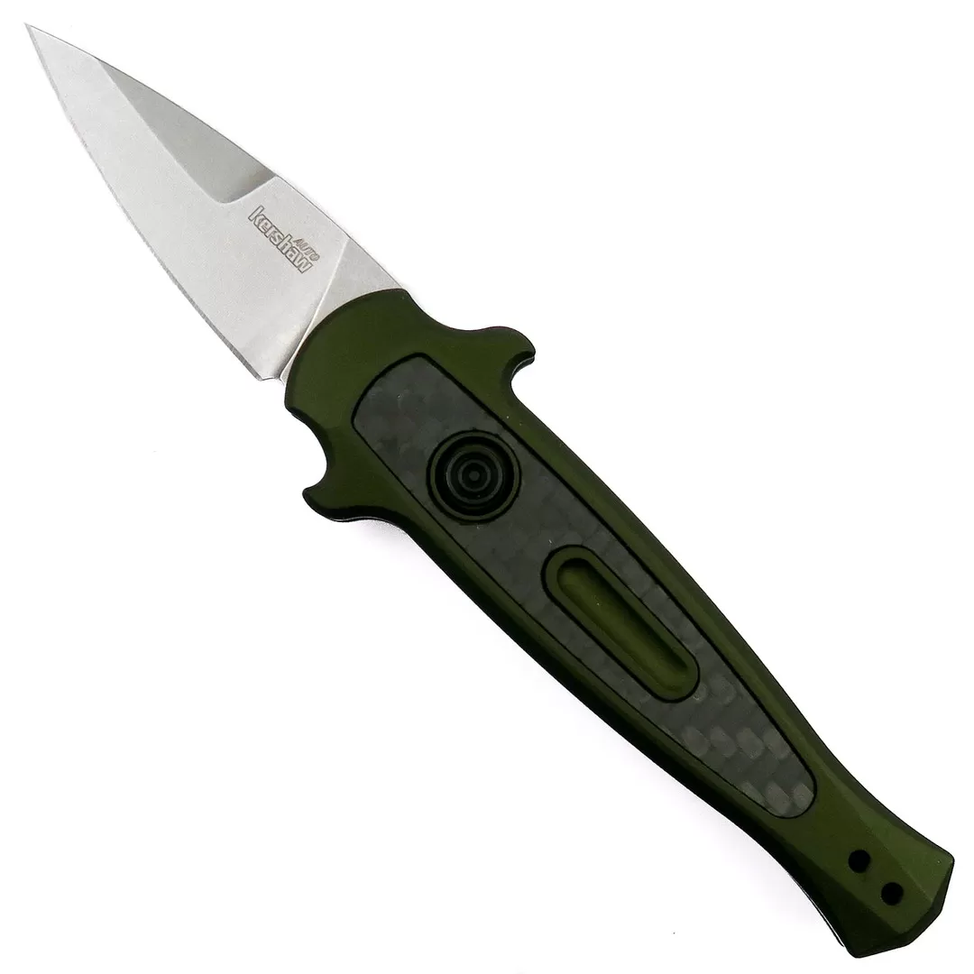 This Kershaw Launch 12CA automatic knife features an OD Green anodized aluminum handle with carbon fiber inlay, a spear point stonewash finished blade. It also boasts a L/R reversible tip-up pocket clip. The 1.93″ blade allows greater carry flexibility in less auto friendly states.