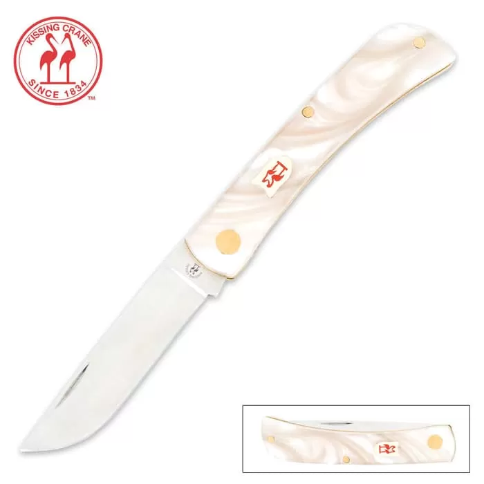 Kissing Crane Pearl Pocket Farmer Pocket Knife