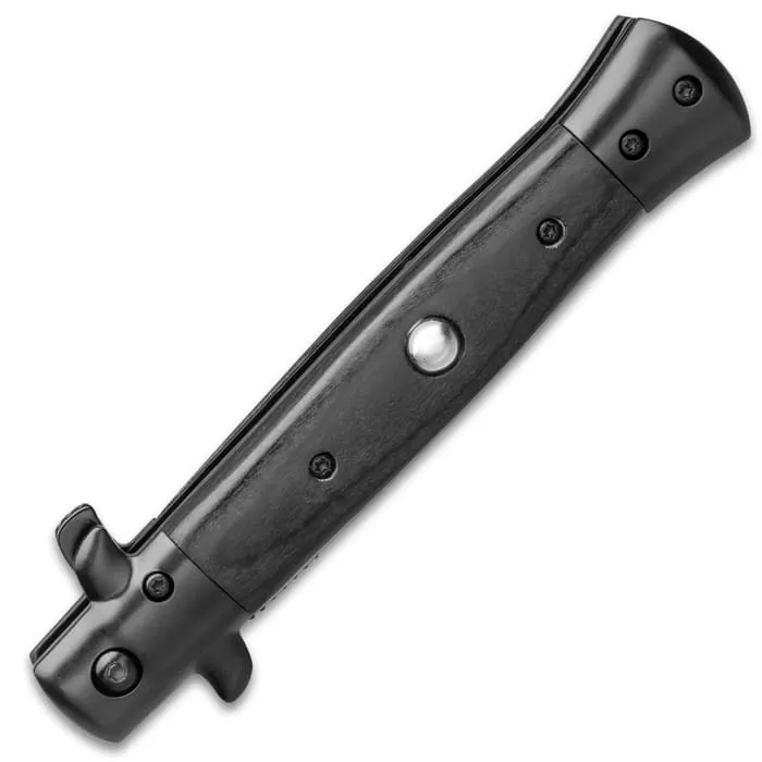 Kriegar Black Stiletto Assisted Opening Pocket Knife – Stainless Steel Blade, Non-Reflective, Wooden Handle