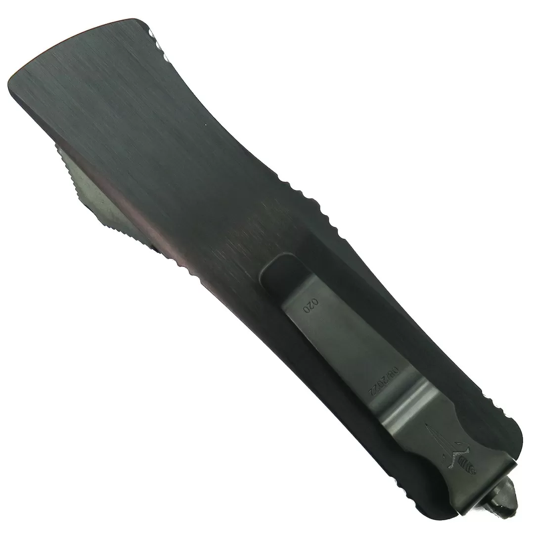 This Marfione Custom Knives Troodon boasts a DLC Diamondwash finished double edge blade.