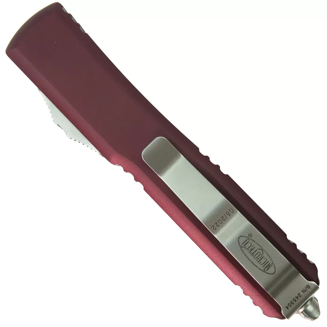 This Microtech Ultratech out the front knife features a contoured merlot handle complete with standard bead blasted hardware and an integrated glass breaker function along with a dagger style blade in a satin finish.