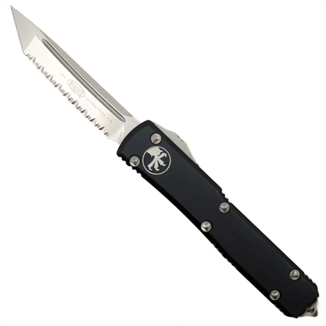 The Ultratech without question has been Microtech’s flagship out the front auto knife since its induction in 1999. Recently it has gone through an additional aesthetic redesign after the overwhelming success and praise of the traditional styling. While the dimensions of the Ultratech remain unchanged, the handle has been stripped back down to its original roots–now offering a smooth contoured chassis, however still boasting the tri-angle hardware, a redesigned thumb slide and the glass breaker that now includes a press fitted ball bearing for a more comfortable, but still functional, user experience. Each Microtech OTF knife has extremely sophisticated internal mechanisms which improve the overall operational functionality and reliability. This model, the 123-12CC, features a contoured black handle complete with standard hardware and an integrated glass breaker function along with a tanto blade, that is fully serrated, in a stonewash finish. Made in the USA.