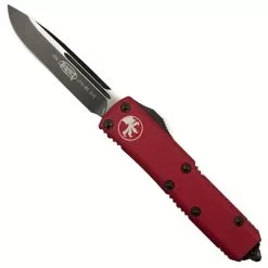 The radically redesigned Microtech UTX-85 out the front knife now features a new contoured handle, updated tri-angle hardware, a redesigned thumb slide and the glass breaker that now includes a press fitted ball bearing for a more comfortable, but still functional, user experience. This fantastic dual action knife is the ideal size and as the name exhibits, the UTX-85 is 85% the size of the flagship Ultratech knife but with 100% of the capability. This model boasts a red handle complete with standard black hardware and an integrated glass breaker function along with a drop point style blade in a black finish with satin finished blade flats. Made in the USA.