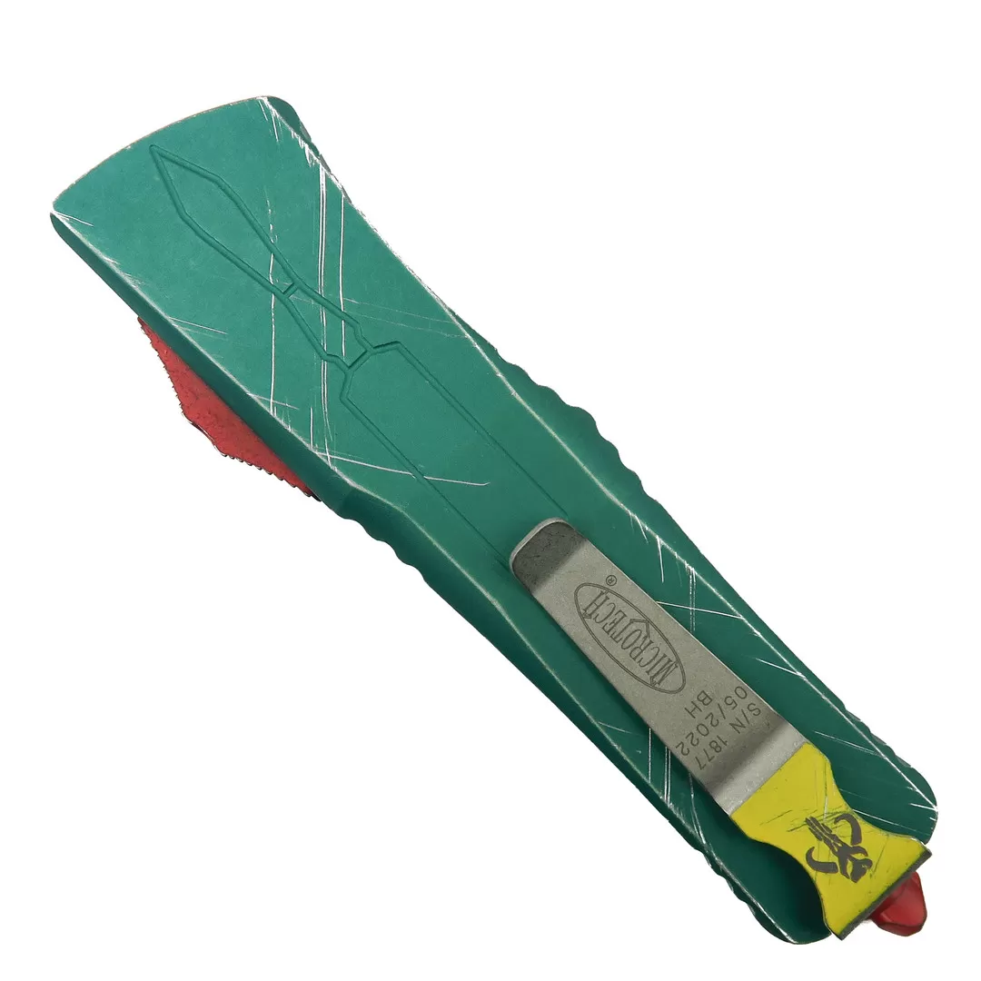 Microtech Bounty Hunter Combat Troodon T/E OTF Knife, Apocalyptic Stonewash Serrated Blade