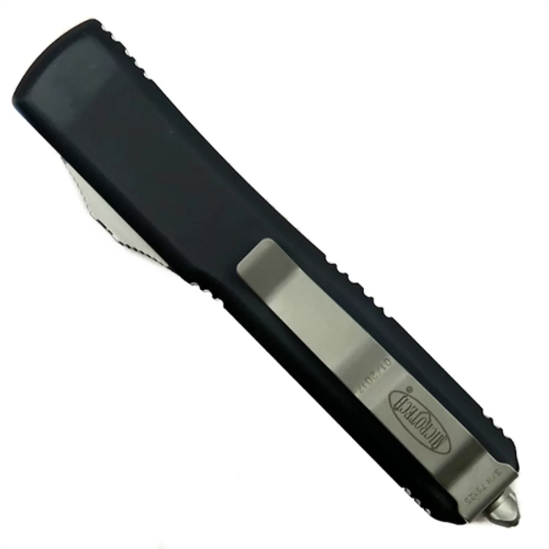 The Ultratech without question has been Microtech’s flagship out the front auto knife since its induction in 1999. Recently it has gone through an additional aesthetic redesign after the overwhelming success and praise of the traditional styling. While the dimensions of the Ultratech remain unchanged, the handle has been stripped back down to its original roots–now offering a smooth contoured chassis, however still boasting the tri-angle hardware, a redesigned thumb slide and the glass breaker that now includes a press fitted ball bearing for a more comfortable, but still functional, user experience. Each Microtech OTF knife has extremely sophisticated internal mechanisms which improve the overall operational functionality and reliability. This model features a contoured black handle complete with standard bead blasted hardware and an integrated glass breaker function along with a dagger style blade, that is partly serrated on both sides, in a stonewash finish. Made in the USA.