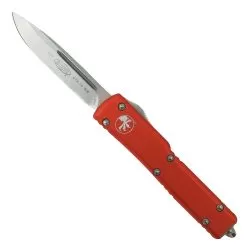 The Microtech out the front Purple UTX70 knife features a stonewash finished M390 blade. The UTX70 OTF fires in and out (double action) when you slide the firing button up and down.