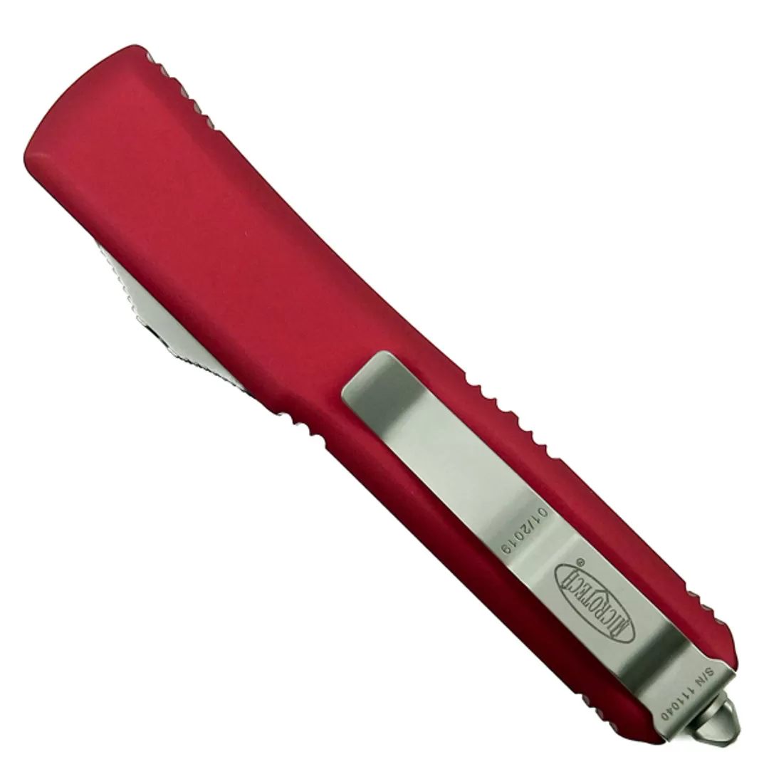 The Ultratech without question has been Microtech’s flagship out the front auto knife since its induction in 1999. Recently it has gone through an additional aesthetic redesign after the overwhelming success and praise of the traditional styling. While the dimensions of the Ultratech remain unchanged, the handle has been stripped back down to its original roots–now offering a smooth contoured chassis, however still boasting the tri-angle hardware, a redesigned thumb slide and the glass breaker that now includes a press fitted ball bearing for a more comfortable, but still functional, user experience. Each Microtech OTF knife has extremely sophisticated internal mechanisms which improve the overall operational functionality and reliability. This model features a contoured red anodized handle complete with standard bead blasted hardware and an integrated glass breaker function along with a dagger style blade in a satin finish. Made in the USA.