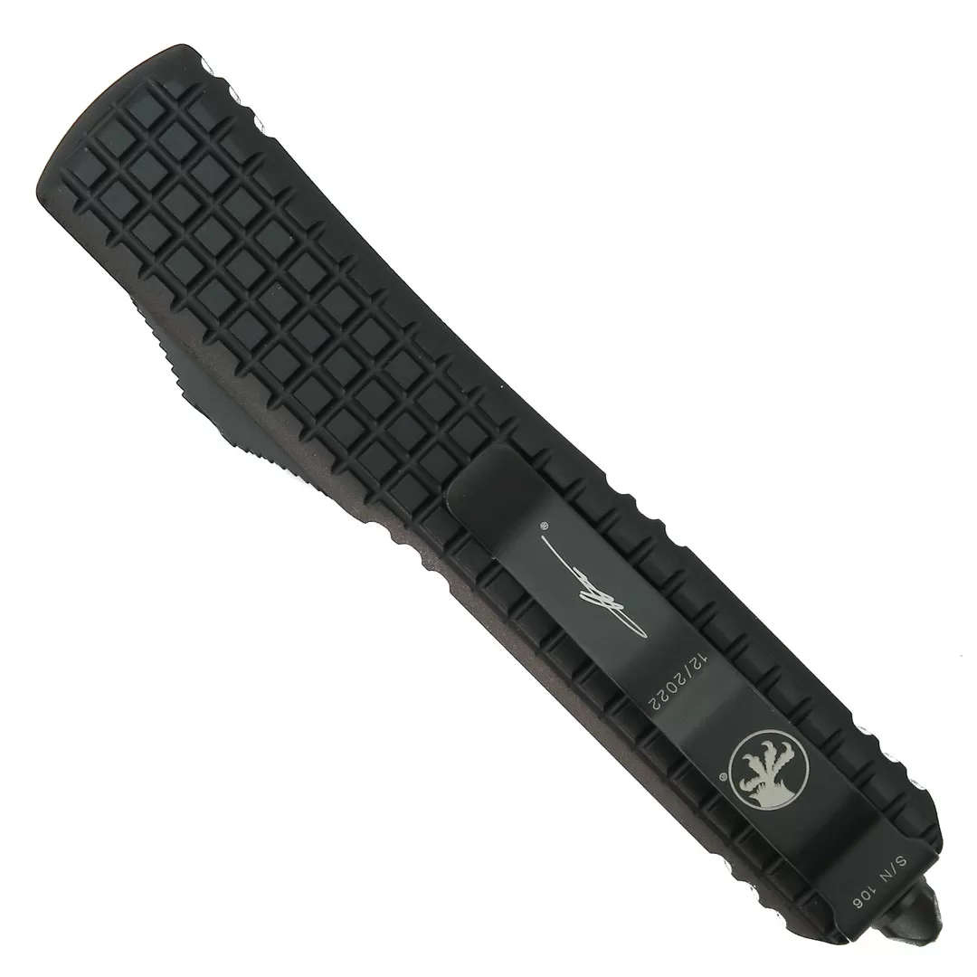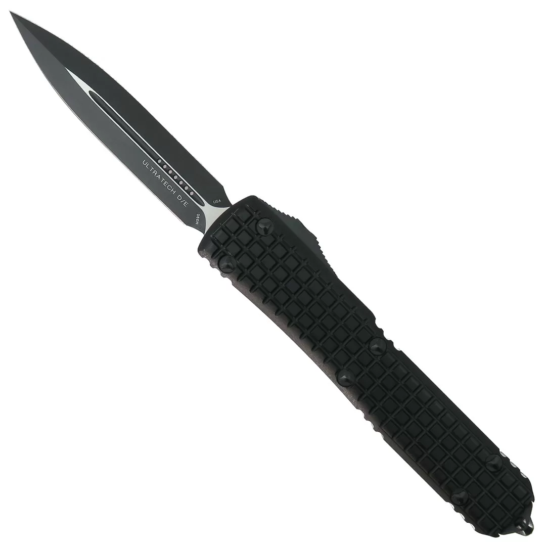 Microtech Signature Series Tactical Black Frag Pattern Ultratech OTF Knife, Black Dagger