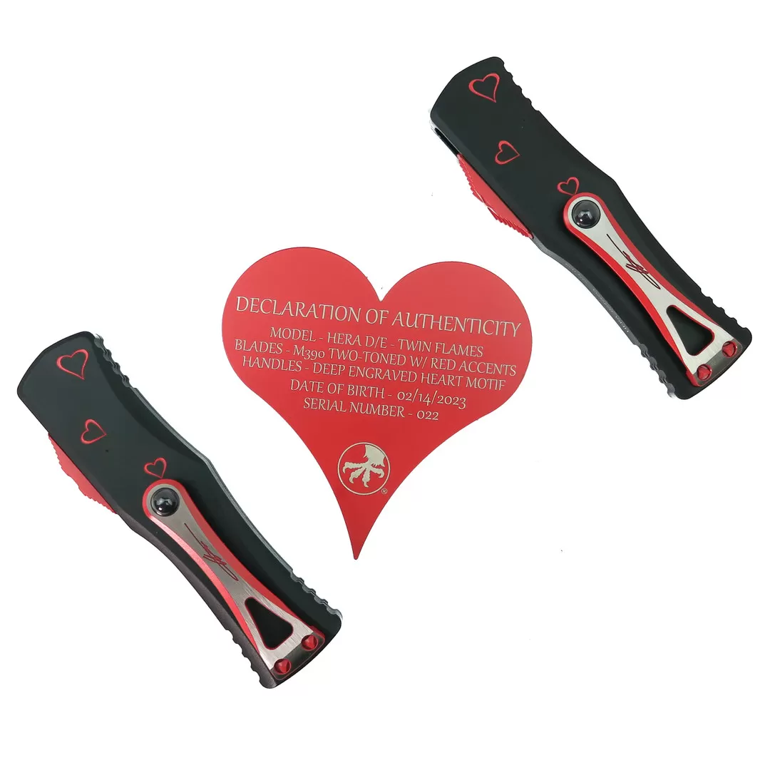This Microtech Knives Hera Signature Series OTF automatic knife set features two deep engraved Hera OTF Knives.