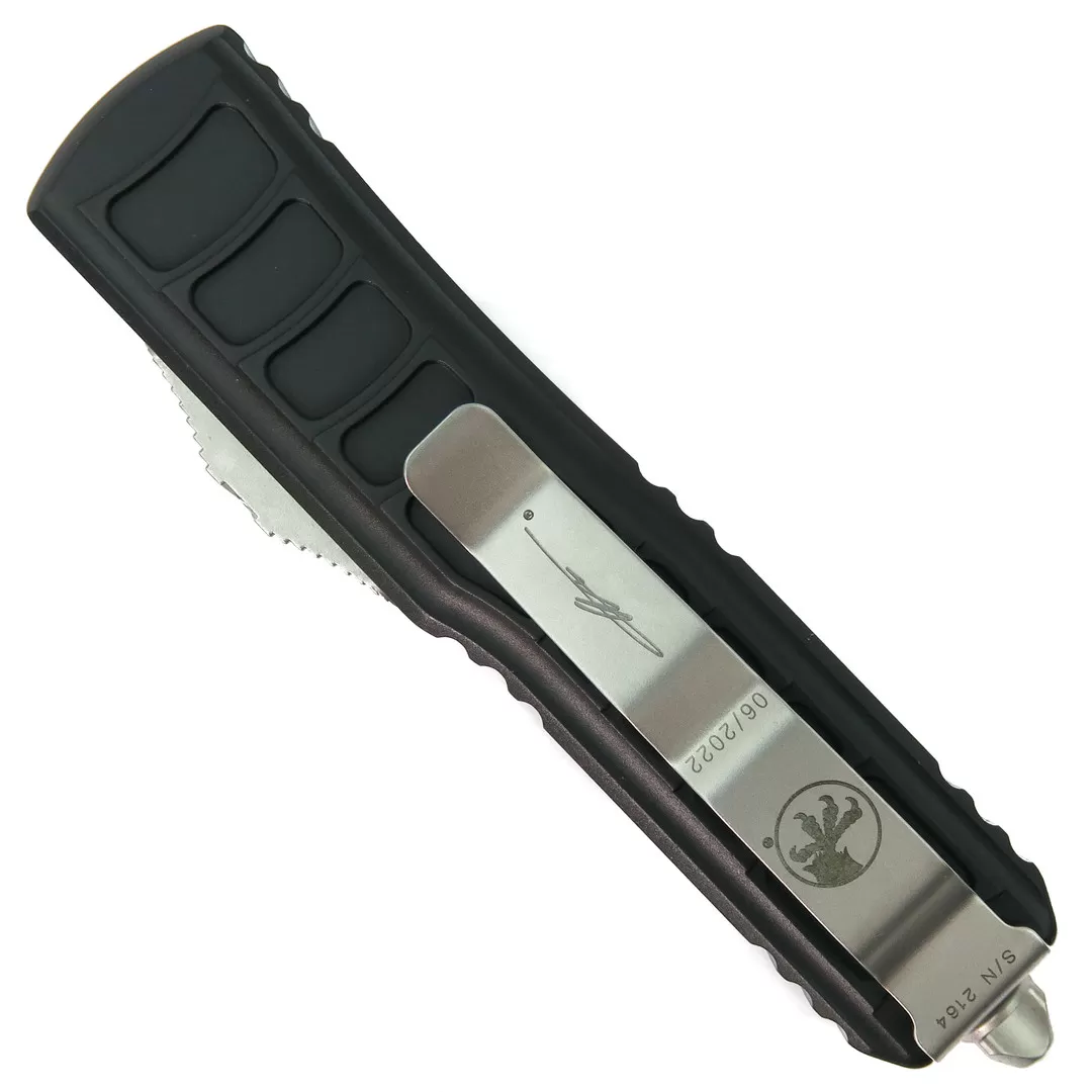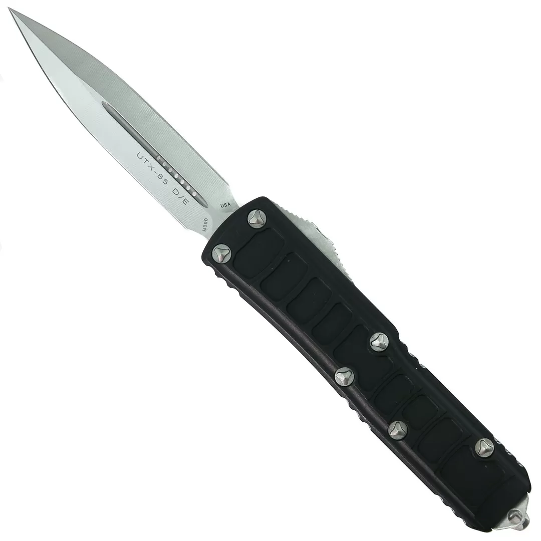 The radically redesigned Microtech UTX-85 out the front knife now features a new contoured handle, updated tri-angle hardware, a redesigned thumb slide and the glass breaker that now includes a press fitted ball bearing for a more comfortable, but still functional, user experience. This fantastic dual action knife is the ideal size and as the name exhibits, the UTX-85 is 85% the size of the flagship Ultratech knife but with 100% of the capability.Â