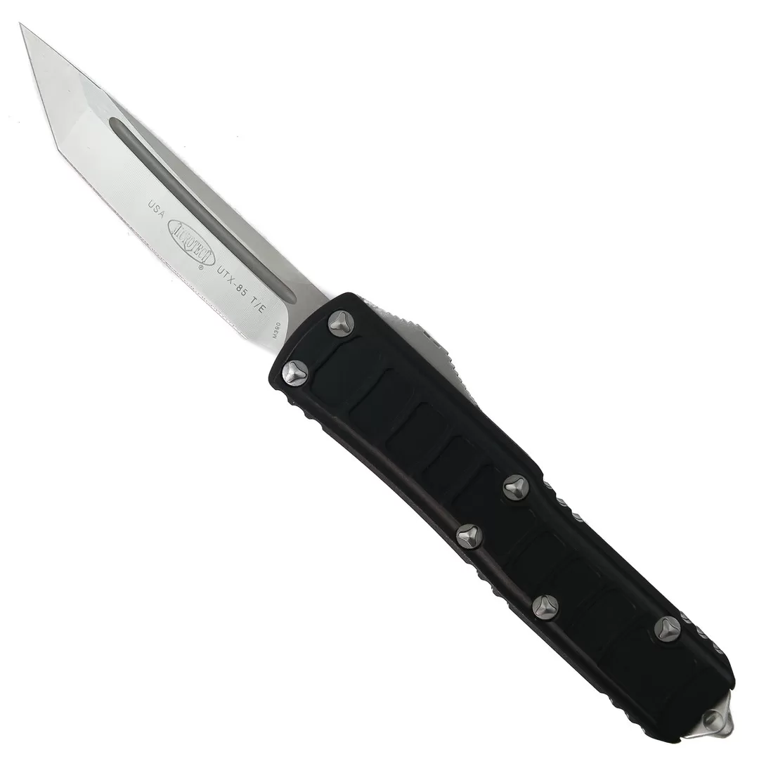 The radically redesigned Microtech UTX-85 out the front knife now features a new contoured handle, updated tri-angle hardware, a redesigned thumb slide and the glass breaker that now includes a press fitted ball bearing for a more comfortable, but still functional, user experience. This fantastic dual action knife is the ideal size and as the name exhibits, the UTX-85 is 85% the size of the flagship Ultratech knife but with 100% of the capability.Â