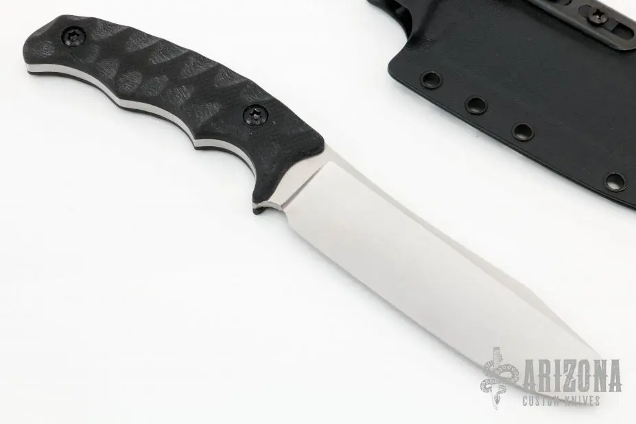 This No B.S. by Shaun Garretson features a satin finished blade with .172″ blade stock and 1.308″ blade depth, full tang construction with sculpted black G-10 scales. Comes with a kydex sheath with Ulti-Clip, and a zippered case. New from maker.