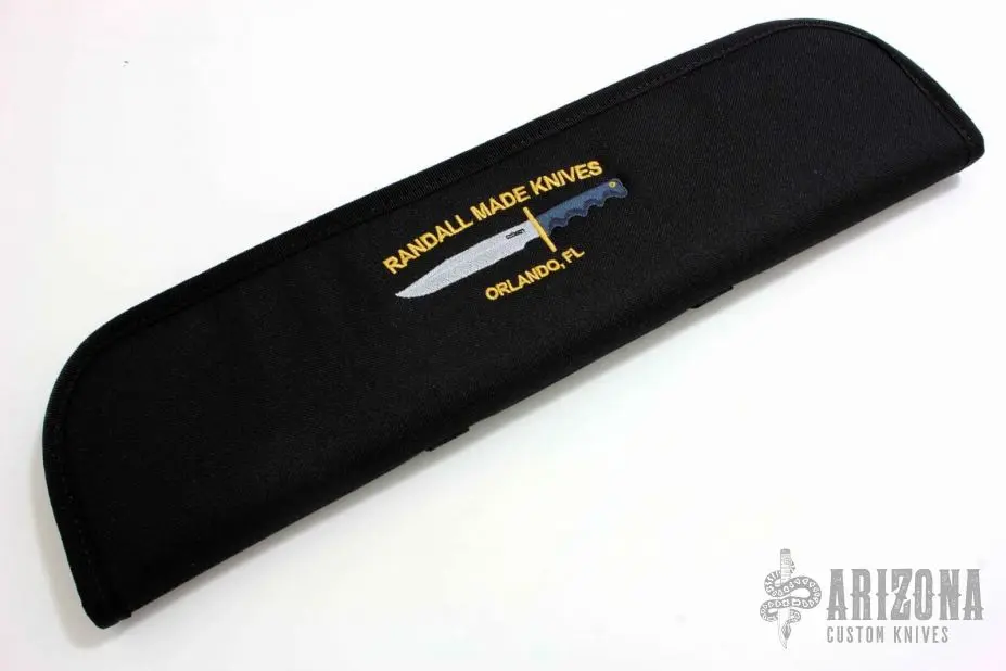 Dimensions are the inside length and depth. Ideal for protecting your folding or fixed blade knives when storing or transporting. Has Randal Made Knives Fighter Logo