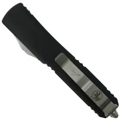 Microtech Signature Series Tactical Black Frag Pattern Ultratech OTF Knife, Black Dagger