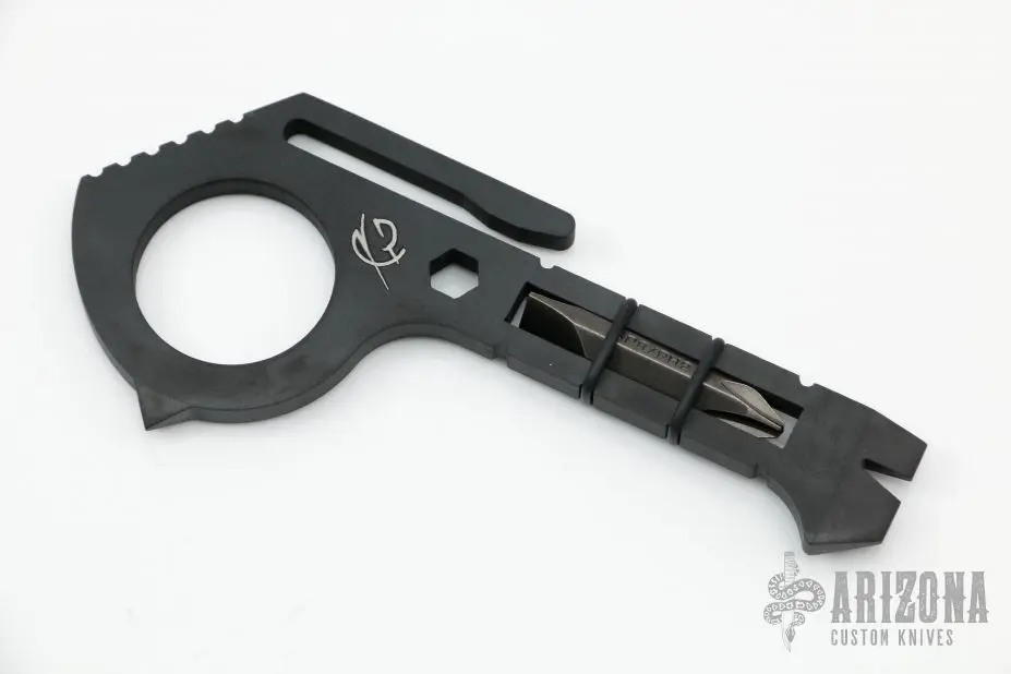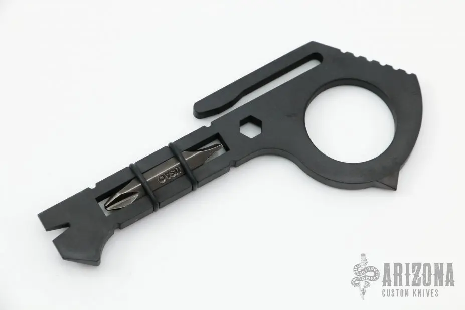 This is the 3rd variation of the Pingvin Multi-Tool. In this variation we deleted the bottle opener and pocket clip and added a built-in pocket “slip” and Phillips/Flat Head driver with hex window. This version of the tool also features a textured ramp for better grip in the hand.