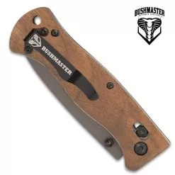Bushmaster Ranger Scout Pocket Knife – Carbon Steel Blades, Wooden Handle, Brass Bolsters, Leather Wrist Lanyard