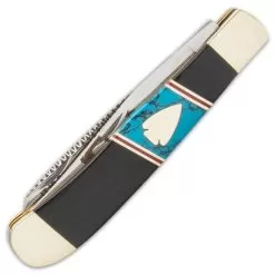 Native American Trapper Pocket Knife – Stainless Steel Blades, Pakkawood Handle, Nickel-Silver Bolsters – Closed 4”