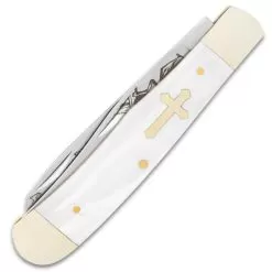 Salvation Pearl Trapper Pocket Knife – Stainless Steel Blades, Faux Pearl Handle Scales, Nickel Silver Bolsters – Closed 4”