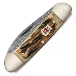 Kissing Crane Burnt Bone Damascus Trapper Pocket Knife