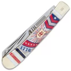 Kissing Crane 2022 Fourth Of July Trapper – Stainless Steel Blades, Faux Pearl Handle, Nickel Silver Bolsters, Brass Liners