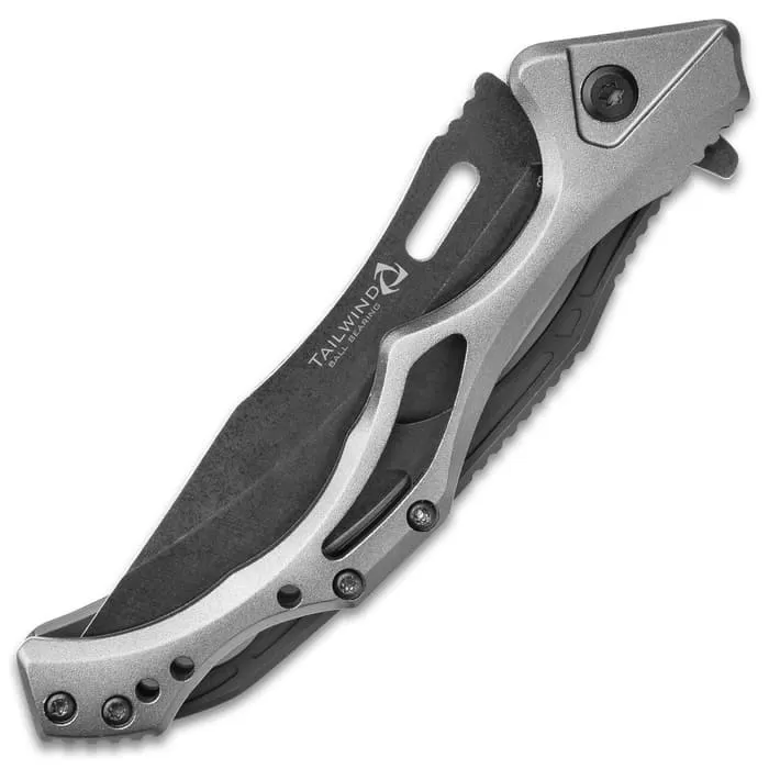 Rampage Tailwind Ball Bearing Pocket Knife – Stainless Steel Blade, Aluminum And Steel Handle, Pocket Clip – 4 3/4” Closed