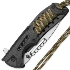 SOA Scout Assisted Opening Pocket Knife – Black With Camo Paracord Wrapping