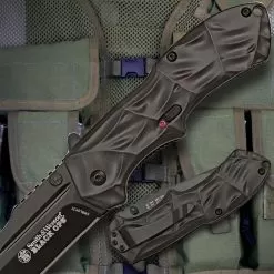 Be the first to review “Smith & Wesson Stonewash Tanto Point Skeletonized Folding Pocket Knife” Cancel reply