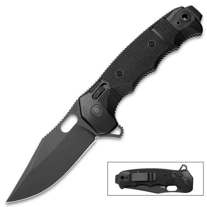 A hard-use folding knife made entirely in the USA, the Seal XR Pocket Knife was designed and optimized in consultation with professional users. It provides the feel and functionality of a SEAL knife in the form of a large format pocket knife. Built from glass-reinforced nylon and S35VN steel, it is an extremely durable knife with high corrosion-resistance and edge-retention. It has a fully ambidextrous design, locking open with the secure XR lock. The XR lock is reliable and powerful, able to withstand up to 1,500 pounds of force, provides the ultimate built-in blade locking security when open and ensures it only opens when intended. In life or death situations, the SEAL XR Pocket Knife delivers.