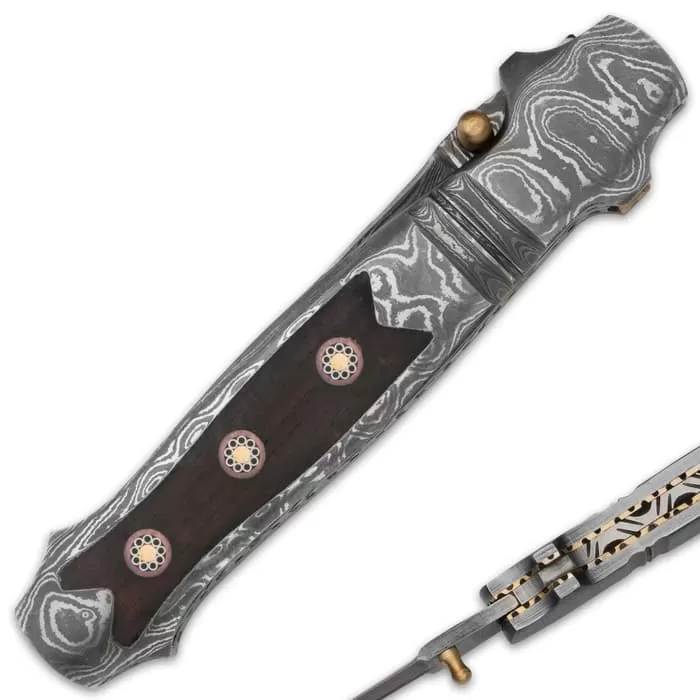 Timber Wolf Mosaic Damascus Stiletto Pocket Knife