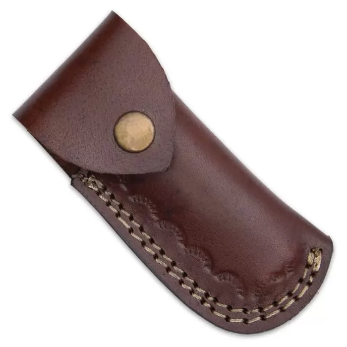 Timber Wolf Texas Trapper Knife And Sheath – Damascus Steel Blades, Wood And Bone Handle – Closed Length 4”