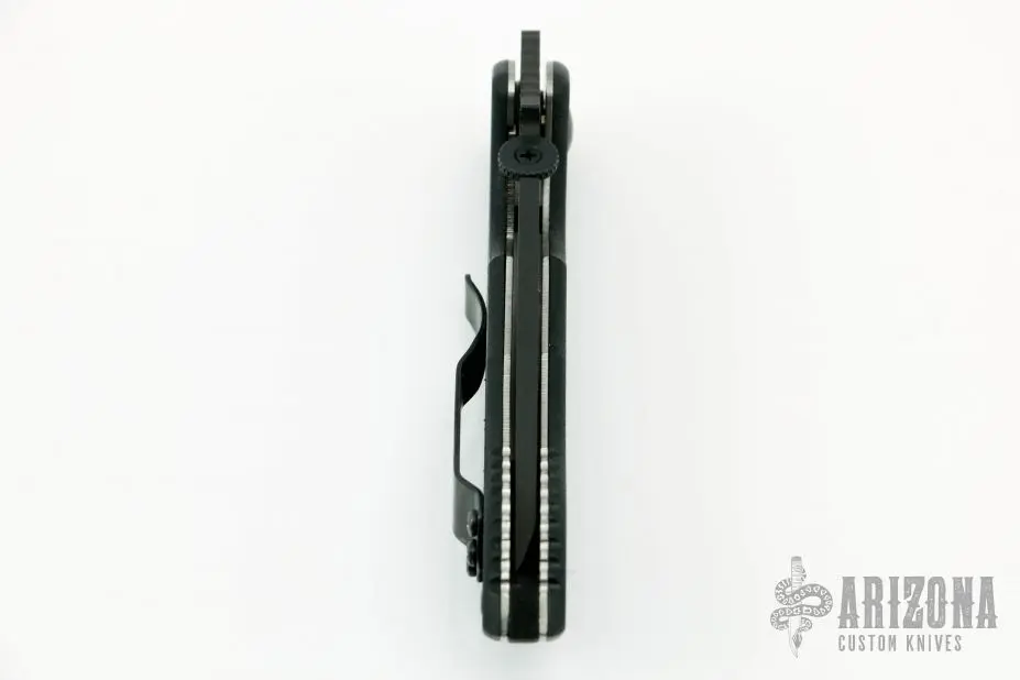 This Mini Commander features a black titanium blade, black G-10 scales, titanium liners and a tip up black stainless steel clip. S/N 028 and dated 2002. Includes original box. Excellent condition.